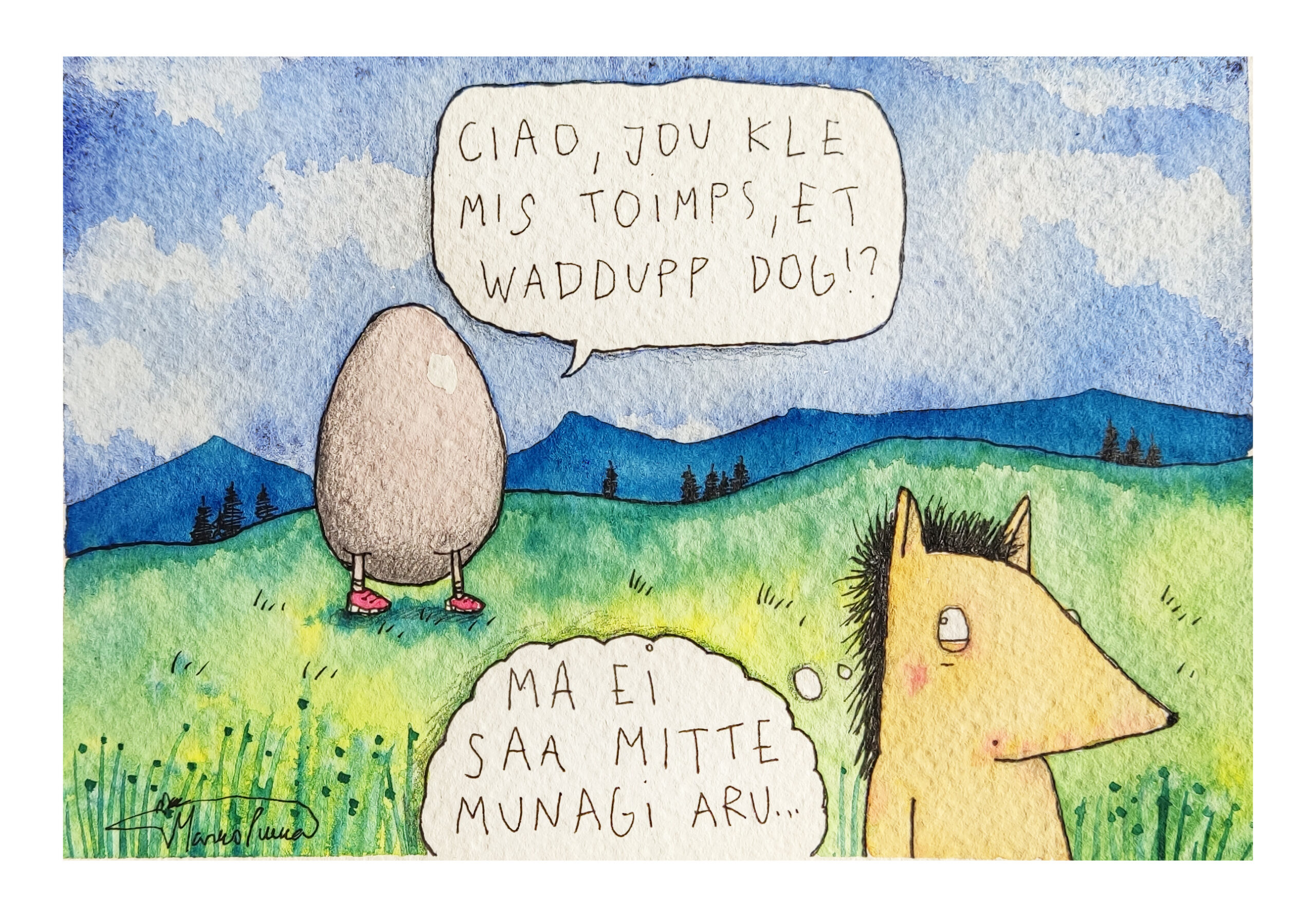 Mitte munagi€55.00 Kirjeldus Nimi: Mitte munagi Suurus: 13x17cm Raam: A4 standardraam Raam Valiei soovi raamisoovin maali raamigaPuhasta Mitte munagi kogus Lisa korvi Tootekood: - Kategooria: sõnamängud ja lõbusad originaalmaalid